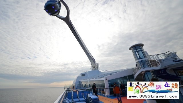 大名鼎鼎的北极星,是船上的海拔最高点。其设计受到了英国伦敦眼的启发,是工程学上的一个奇迹,可360度旋转的吊杆手臂,将宝石形的玻璃舱将游客送往离海平面91米的全新高度。
