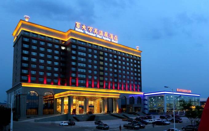 葫芦岛百大万美温泉酒店,位于葫芦岛市连山区东城经济开发区,建筑面积51000平方米,拥有星级标准装修的现代时尚客房,是葫芦岛市第一家集水上乐园、 温泉汤浴、商务会所、特色餐厅、休闲娱乐等多元素为一体的高标准、多功能温泉度假休闲酒店。多元的温泉文化,2100米深的地热温泉,富含多种矿物质。爱 琴海温泉、养生温泉、情侣温泉泡池、特色池中池、休闲泡池及玉石炕、水疗区、海浪池、大型水寨、游泳池、儿童戏水池、小鱼温泉等一流的水上娱乐设施构成了 全家老少共享的温泉乐园。主题唱吧、休息大厅、会议室、SPA会馆、汗蒸、儿童淘气堡乐园、游艺区、健身区、特色餐厅、海鲜自助等项目,将打造一个生态自 然、时尚高雅、轻松动感的温泉梦幻天堂。